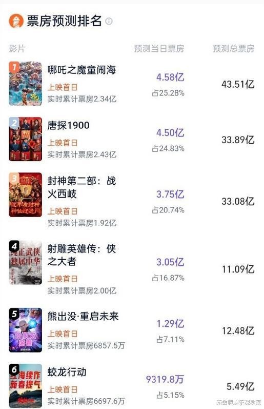 春节档作为中国电影市场的重要战场,每年的竞争都异常激烈。灯塔专业版最新春节档预测出炉,数据显示,大年初一的票房竟高达18亿!其中,《唐人街探案》以4.5亿的首日票房表现不俗,总票房预计将达到34亿。而《哪吒2》更是强势开局,首日票房为4.58亿,总票房预期可达43亿!